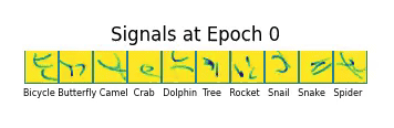 In contrast to the supervised approaches of VLMs and VLAs, which rely on joint-embedding, auto-regressive prediction, or diffusing tuples of language and multi-modal data, my approach instead treats language as an emergent phenomena that arises from grounded interaction with other agents in a decision-process. In my recent work on the cognitive and cultural preconditions for symbolic signaling (Spiegel et al., 2025), I show that a Bayesian “visual theory of mind” is sufficient for bootstrapping inferential communication between learning agents. By simulating millions of signaling interactions in a novel JAX-based signaling game, I demonstrated that agents will spontaneously invent proto-writing systems about their environment that evolve from iconic pictographs into abstract symbols—mirroring the trajectory of many human scripts (pictured top of post, below).